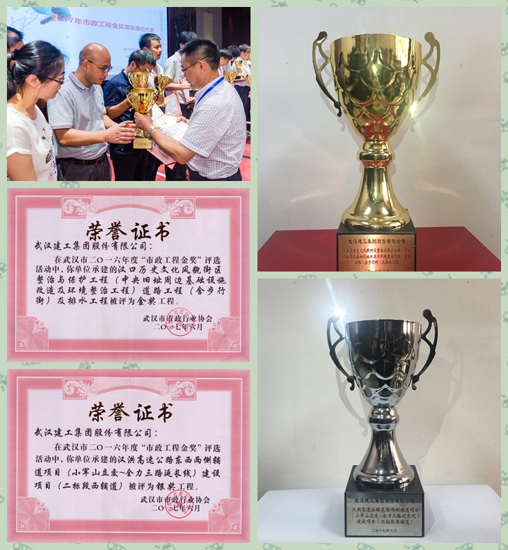 7月28日, 2016年度武漢市市政工程金獎表彰大會在武漢會議中心圓滿舉行,由路橋分公司申報的兩項(xiàng)工程喜摘武漢市“市政金杯金獎”一金一銀。